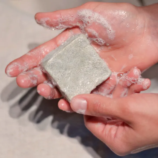 Bő vízzel nedvesítsd meg a hajad, majd mintha egy hajkefével fésülnéd, simítsd végig hátrafelé minden oldalon a sampont a fejeden. Ha nem habzik eléggé, adj még hozzá egy kevés vizet. Mivel a szilárd sampon nem tartalmaz nedvességet, hab pedig nincsen víz nélkül, így előfordulhat, hogy csak a “szárazság” miatt nem megfelelő a habzás. (Zárójelben: habfelhők nélkül is tisztít, de ha te szereted a sok habot, akkor inkább kétszer mosd!)