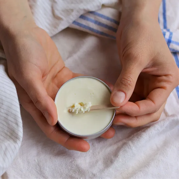 Összetevők: Cocos nucifera (Coconut) oil**,Zea mays (corn) starch**, Arachidyl Alcohol, Behenyl Alcohol, Arachidyl Glucoside, Sodium bicarbonate, Zinc oxide, Lavandula angustifolia oil**, Citrus reticulata oil, Limonene*, Linalool*. (*Az illóolajok természetes összetevői) (**ökológiai gazdálkodásból származó összetevő)