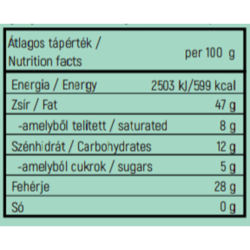 Kiváló minőségű földimogyoróból készül, extrán krémes, és ami a legfontosabb: a földimogyorón kívül nincs benne semmi más. Se pálmazsír, se más növényi zsír, se cukor, se emulgeálószer, semmi!