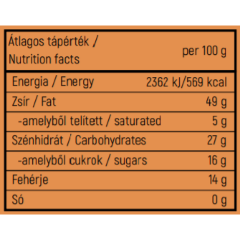 Összetevők: törökmogyoró (78%), akácméz, kakaópor